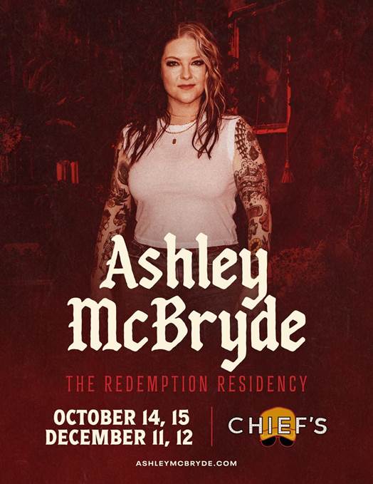 NASHVILLE, TN – August 4, 2025 – Today, GRAMMY®, CMA, and ACM Award winning singer-songwriter Ashley McBryde announces a four-show residency at Chief’s ticketed venue, Neon Steeple. Each of the four nights of The Redemption Residency will be one-of-a-kind show experiences, with McBryde curating set lists, themes, and moments that could only happen here.