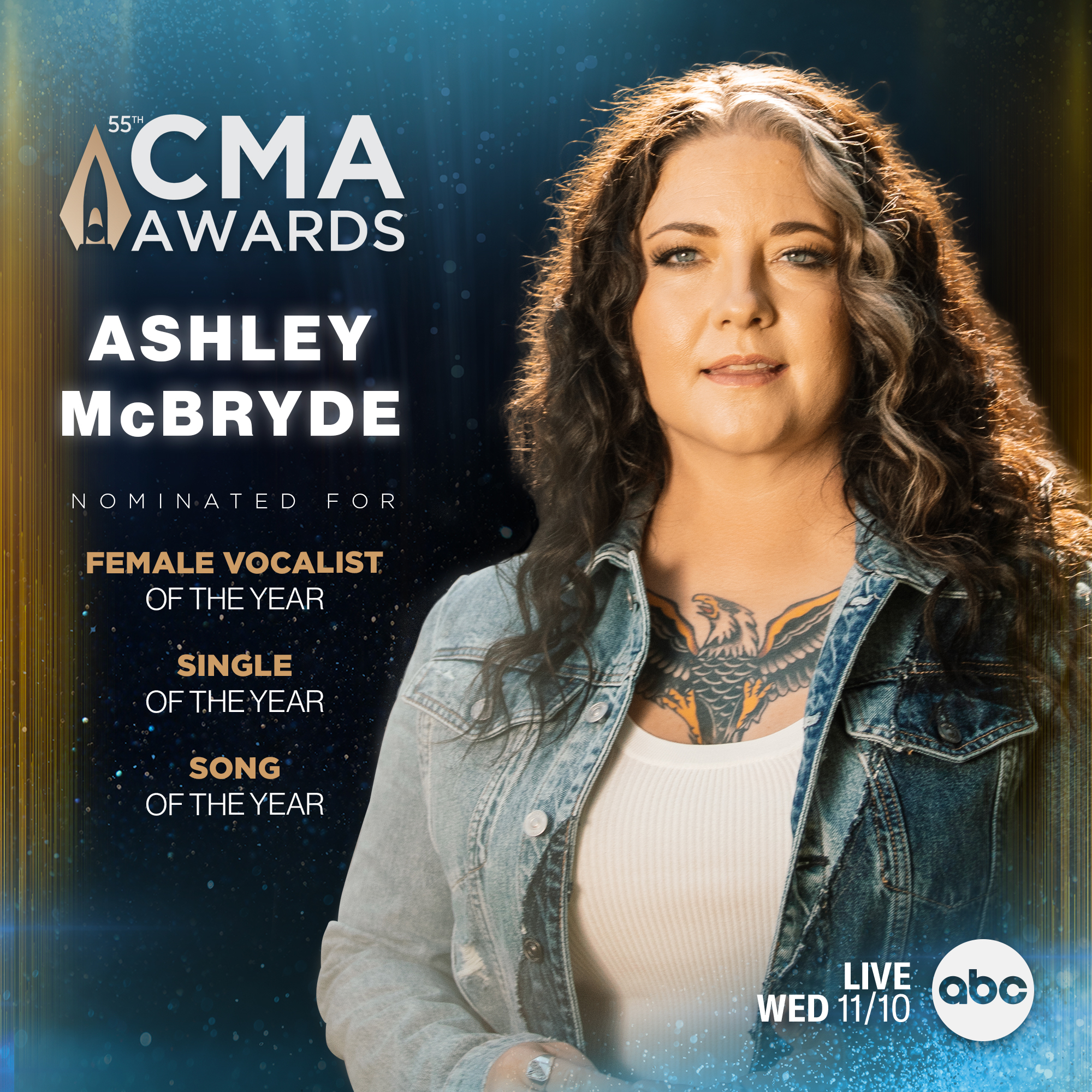 Following a three-night sold-out run of shows at the historic Ryman Auditorium, Ashley McBryde continues soaring to new heights in 2021 with three nominations from the Country Music Association: Female Vocalist of the Year, Single of the Year and Song of the Year for her critically acclaimed, RIAA Platinum-certified track “One Night Standards,” from her Warner Music Nashville follow-up Never Will.