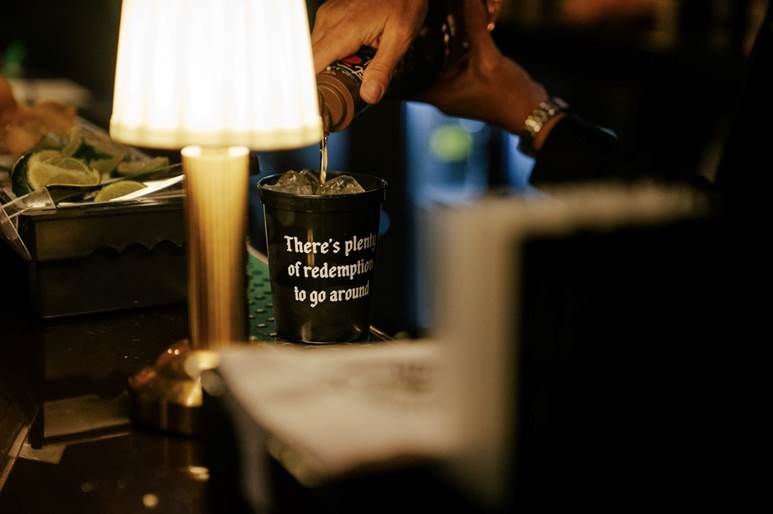 Owning the fifth floor of Eric Church’s Chief’s at 200 Broadway, Redemption is inspired by McBryde’s personal path to sobriety, designed as a space that honors authenticity, connection, and original songwriting. Brought to life by the team at AJ Capital, Redemption is painted crimson, adorned with moody decor and easter egg details of McBryde’s journey. Each of the 18 zero-proof drinks available on its menu are as carefully composed as a setlist – from the “Flickerin’ Flames of Hell” and “Martini McBryde,” to “Gospel Night” and “The Devil I Know.”