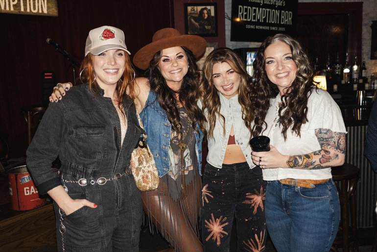 Photo ID (L-R): Caylee Hammack, Shelly Fairchild, Tenille Townes, and Ashley McBryde celebrate the opening of Redemption Bar